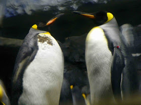 The final exhibit actually held birds--and rather comical ones. It housed five species of Antarctic penguins. Unlike other birds, penguins have solid, dense bones that help keep them from floating. They're also covered in a layer of blubber and warm feathers to protect them from icy water. A penguin's diet consists mainly of crustaceans, fish, and squid.