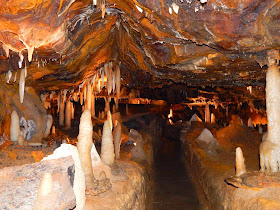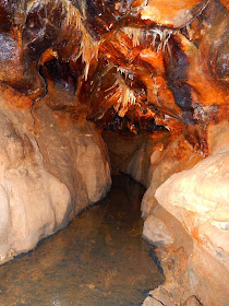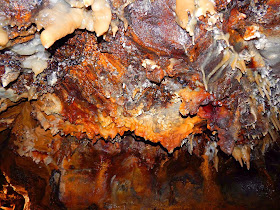 The picture below shows one of the iron oxide formations that add color to the ceiling throughout much of the caverns. Although the dim lighting in the caves masks some of the bright colors, they come out quite clearly when exposed to a camera flash.